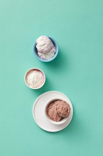 Successful ice cream making hinges on precise recipe adherence․ Begin with a well-tested recipe‚ carefully measuring each ingredient for optimal results․ Typically‚ a basic recipe includes cream‚ milk‚ sugar‚ and flavoring․